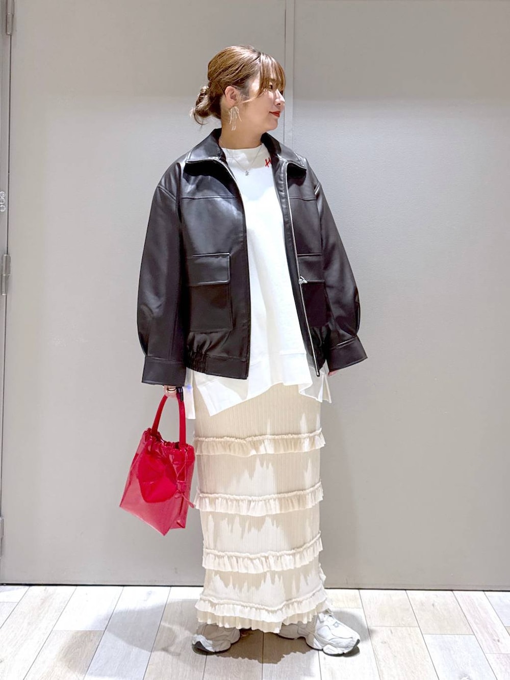いつもご覧頂きありがとうございます! フェイクレザーブルゾンのフェミニンMIXコーデ☺︎ レザー素材ってカッコイイイメージがあるけど、スカートのフリルでフェミニンさをプラス! レザー自体もブラウンチョイスでぐっと優しい印象に! 今回中に着たトップスとスカートはマタニティ(産前産後OK)なので色々な体型な方に着ていただけます◎ ----------------------------------------- スタイリング毎日更新してます♡ いいなと思ったらフォロー&♡お気に入りお願いします☺︎ InstagramのプロフURLからインスタ画面のままご購入頂けると通知がきてとても励みになります!! 宜しければそちらから是非お願い致します! ▶︎大分店スタッフ: ▶︎Instagram: DMからご質問やご相談など気軽にお待ちしております♡ ▶︎WEAR: