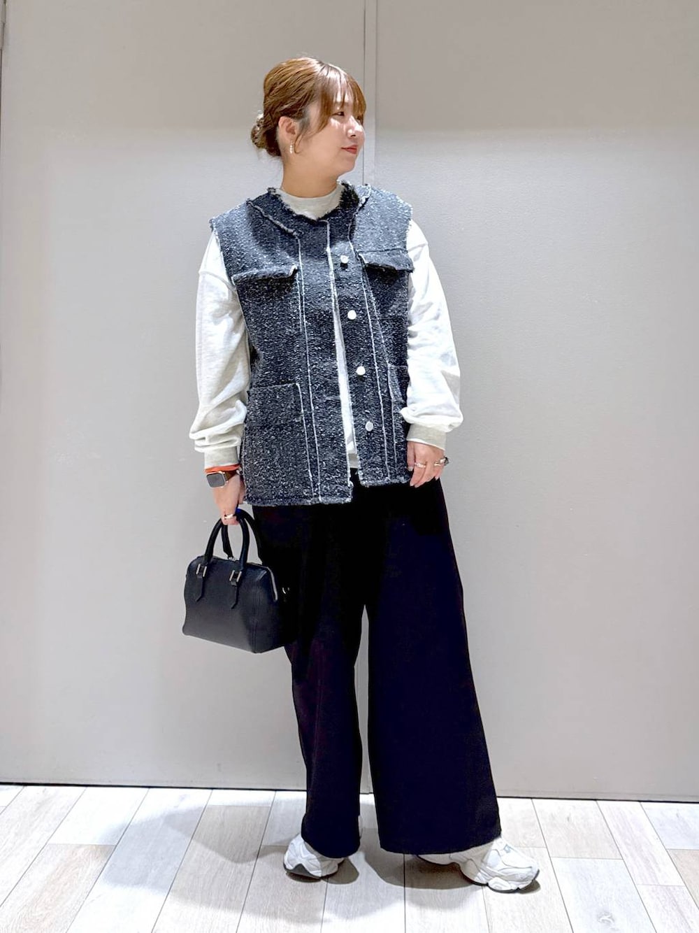 いつもご覧頂きありがとうございます! デニムツイードベストのカジュアルコーデ☺︎ 綺麗め見えもしてくれるデニムツイードベストにスウェットを合わせてカジュアルに♡ パンツは安定の履きやすさギャザーワイドパンツを◎ ----------------------------------------- スタイリング毎日更新してます♡ いいなと思ったらフォロー&♡お気に入りお願いします☺︎ InstagramのプロフURLからインスタ画面のままご購入頂けると通知がきてとても励みになります!! 宜しければそちらから是非お願い致します! ▶︎大分店スタッフ: ▶︎Instagram: DMからご質問やご相談など気軽にお待ちしております♡ ▶︎WEAR: