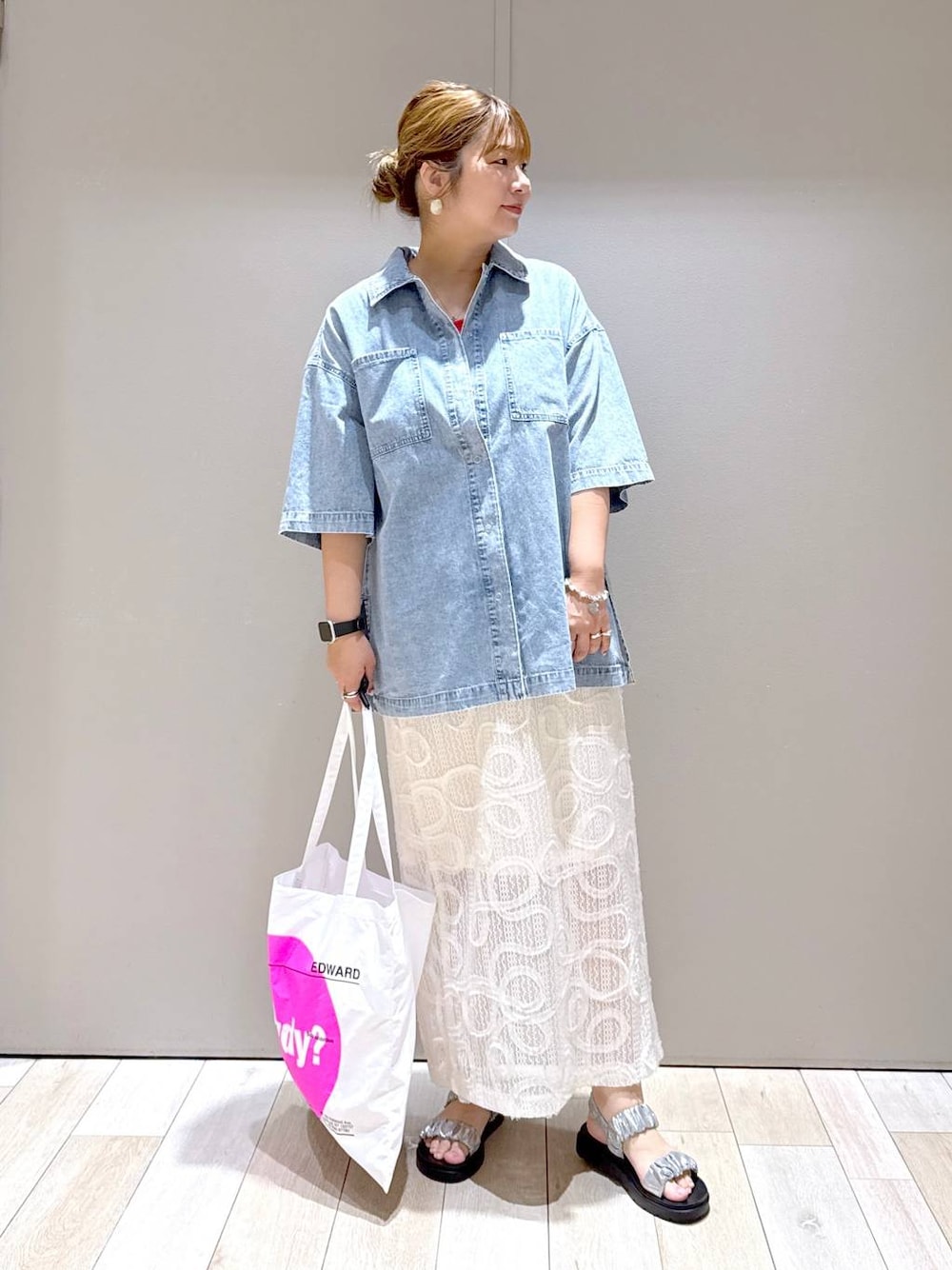 たかみな(LEPSIM パークプレイス大分)のシャツ/ブラウス「BIGデニム5分袖シャツチュニック 242829」を使ったコーディネート