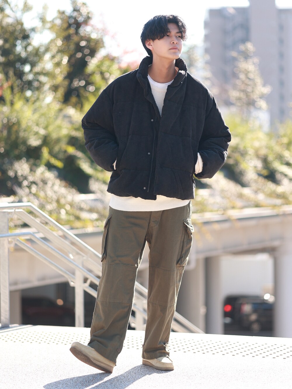 閲覧ありがとうございます🙇♂️ 今回はコーデュロイダウンを使ったコーディネートです⛄️❄️ 一味違うダウンの表面感ととシルエットがお気に入りのデザインです◎ カーゴパンツ×革靴でミリタリー感を出したスタイリングに🍃 ------------------------------------------- Instagram▶︎▷@takuma_1996 ルミネ立川店▶︎▷@junred_lumine_tachikawa JUNRed公式 ▶︎▷junred_jp こちらも是非フォローお願い致します🙇♂️