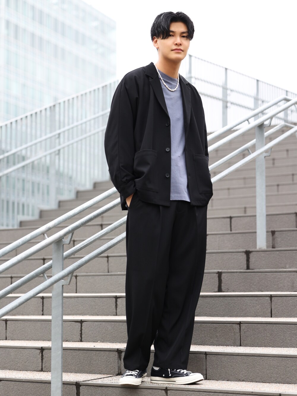 閲覧ありがとうございます🙇♂️ 今回はジャケットのセットアップを使った春先取りコーデです🌸 全体的な黒のアイテムにインナーでブルーを入れて爽やかな着こなしに◎ 足元はスニーカーで黒のセットアップでも硬く見えすぎないスタイリングを意識しました!! ------------------------------------------- Instagram▶︎▷@takuma_1996 ルミネ立川店▶︎▷@junred_lumine_tachikawa JUNRed公式 ▶︎▷junred_jp こちらも是非フォローお願い致します🙇♂️
