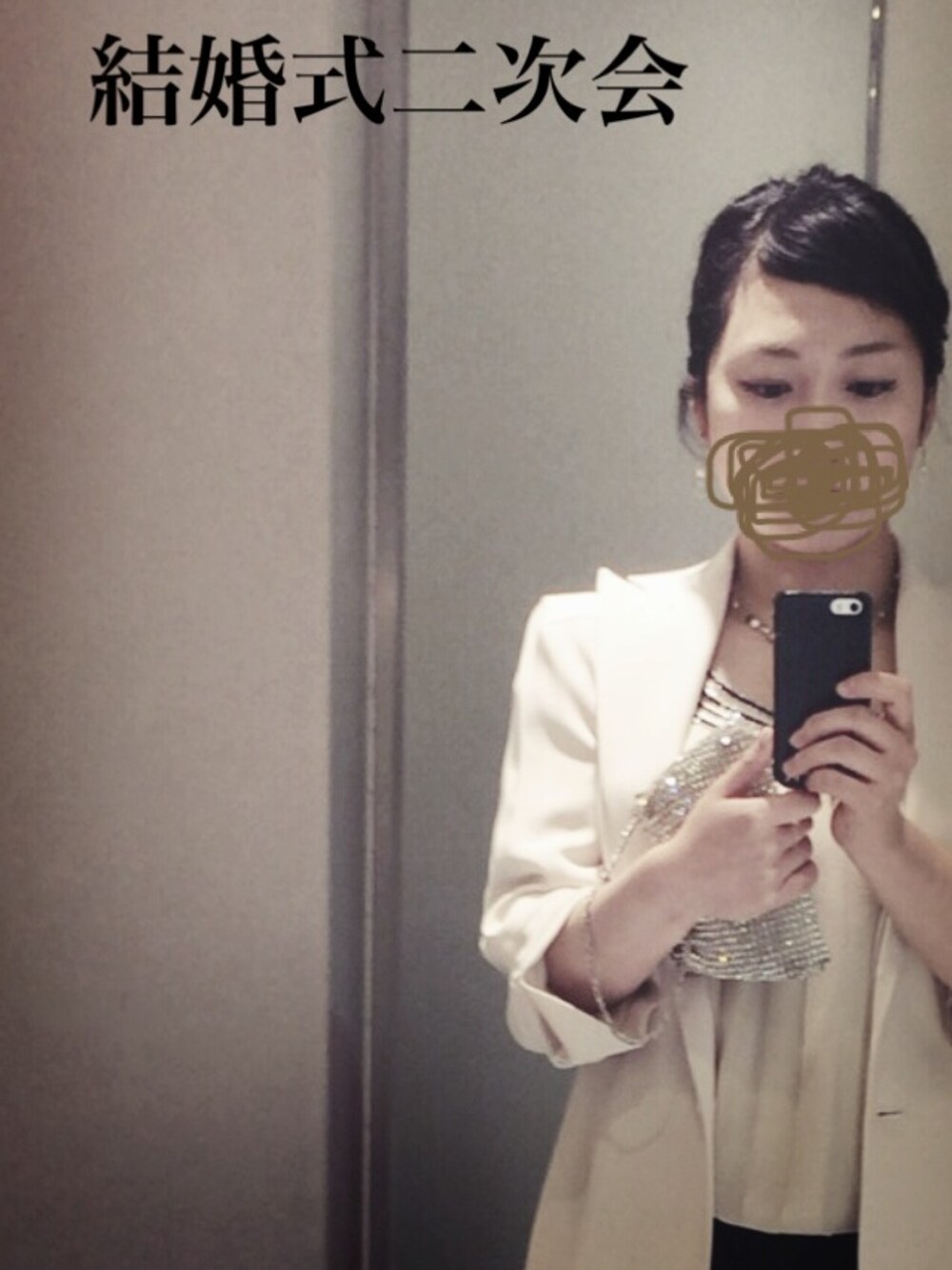 ジャケットと靴と鞄は母からの借り物。 先輩の結婚式二次会。 私が作ったムービーも流してもらって感激。 私はいつ結婚するのかなあ〜〜。