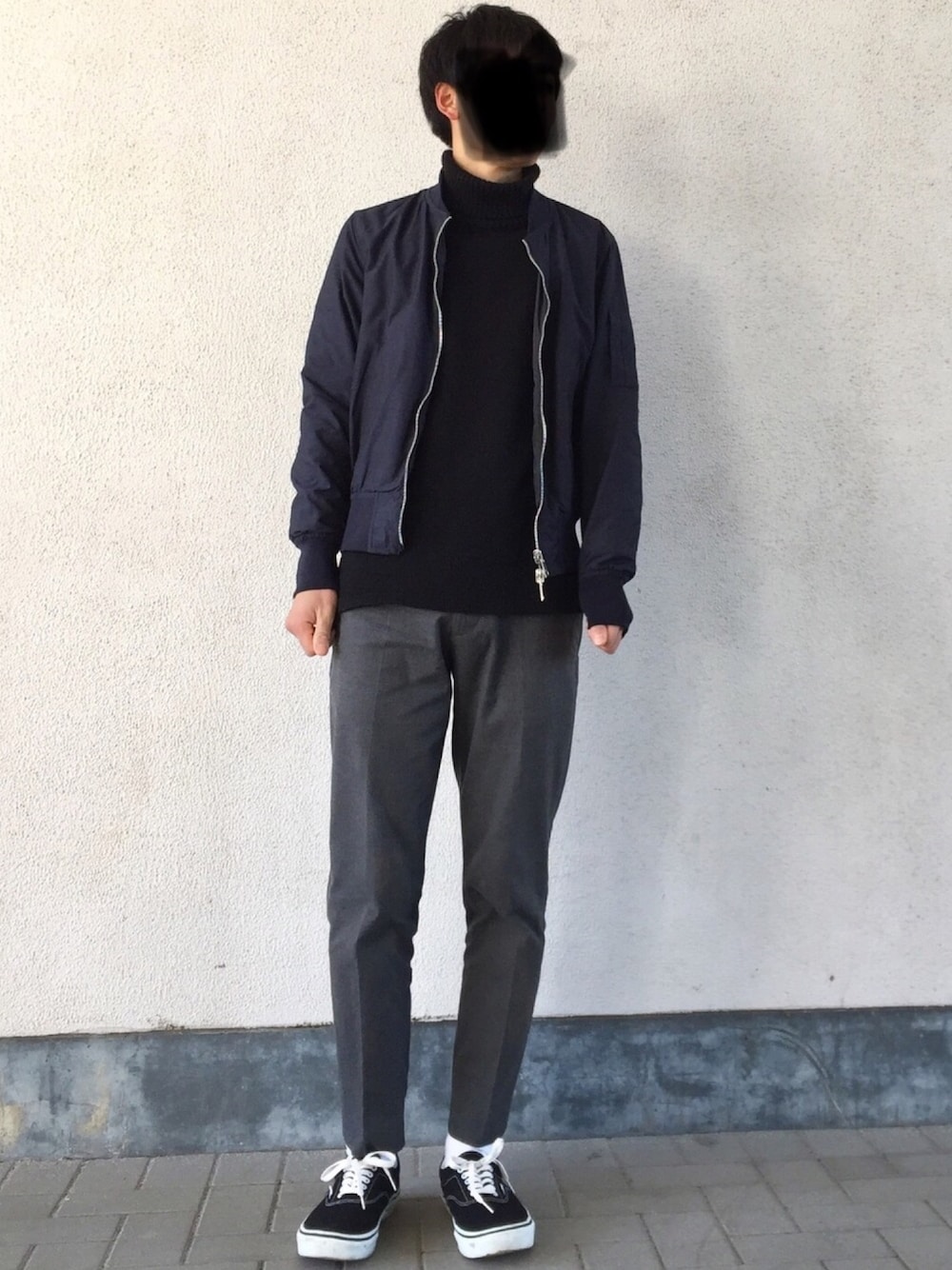 ネイビーのMA-1にタートルネックニット✨