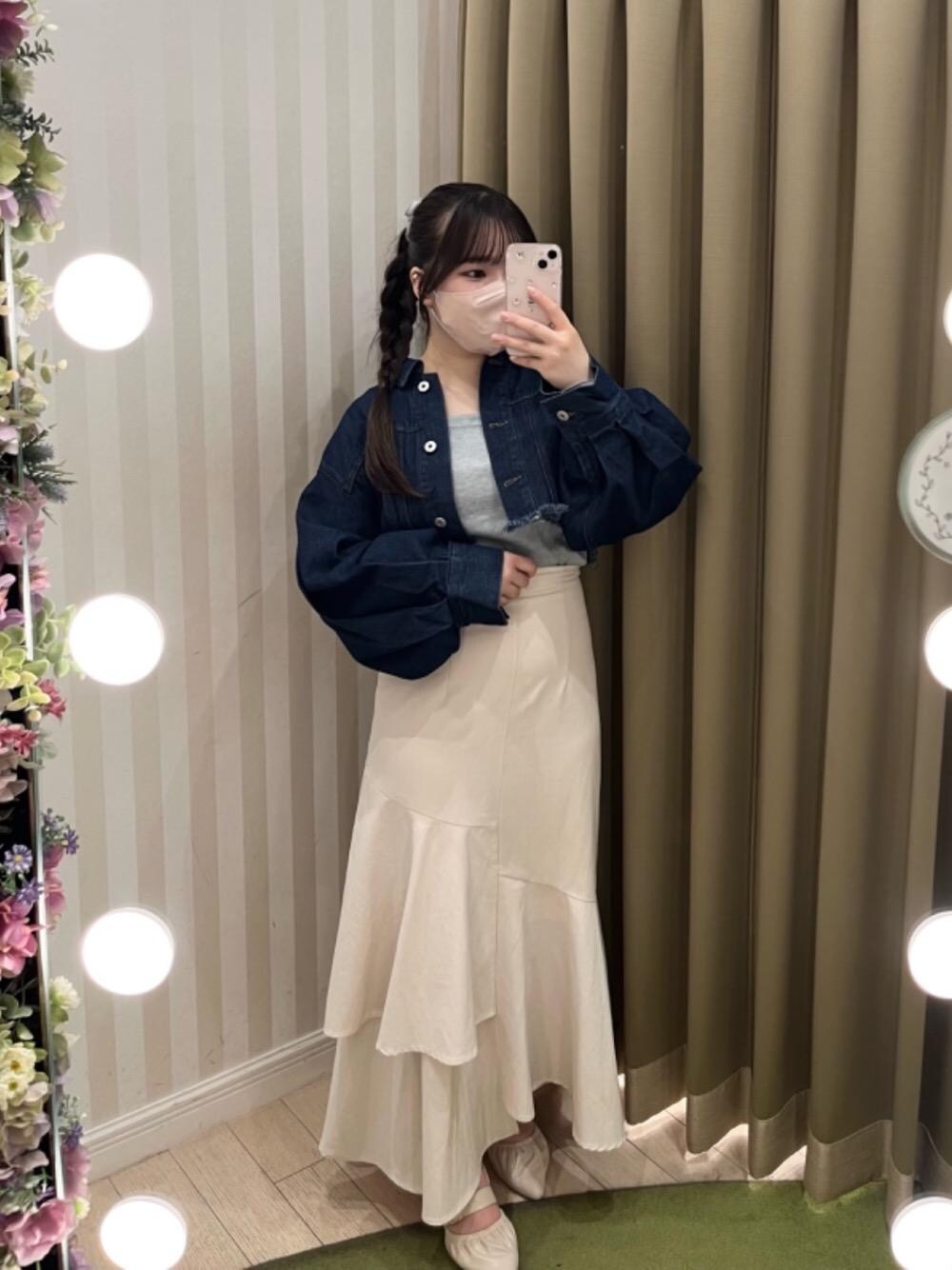 暖かくなってきたこれからにぴったりの春コーデ🌷 デニムジャケットを羽織るだけで一気に春感増しますよね...🥹 短めの丈感になっているので合わせやすや抜群です! カジュアルめも好きだけどかわいさや大人っぽさもほしい方は足元ミュールやパンプスで抜け感だしてあげるのがオススメです💖
