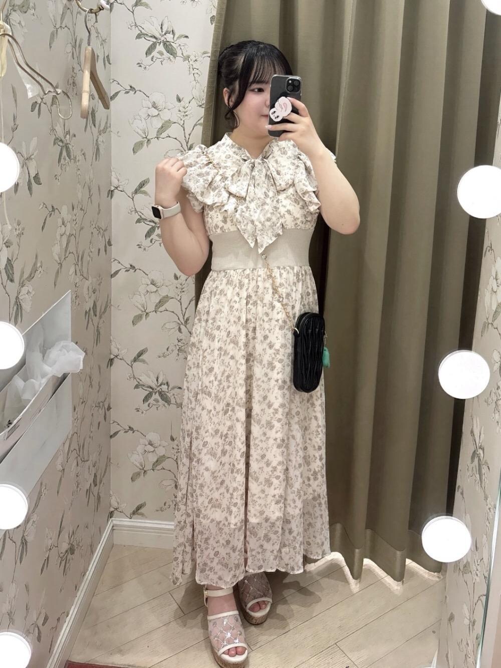 153cm Mサイズ着用👗 コルセットデザインになっているので、細見え抜群ワンピ...! デザインもフェミニンなお花柄で、推し方やデートにぴったりの一枚です🫶🏻 低身長さんでも着やすい丈感なので、ローヒールのサンダルでも厚底合わせでも可愛いです🤭