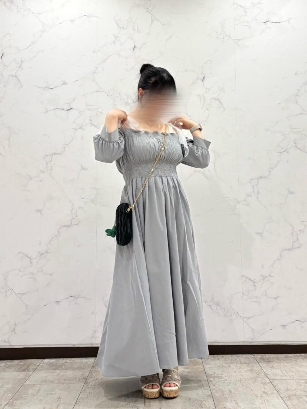 シルエット大優勝ワンピ💡 ウエスト部分シャーリングになっているので、常に細見えしちゃいます💖 一枚できても、肩リボンのインナーを合わせてもとっても可愛く着ていただけます!🫶🏻