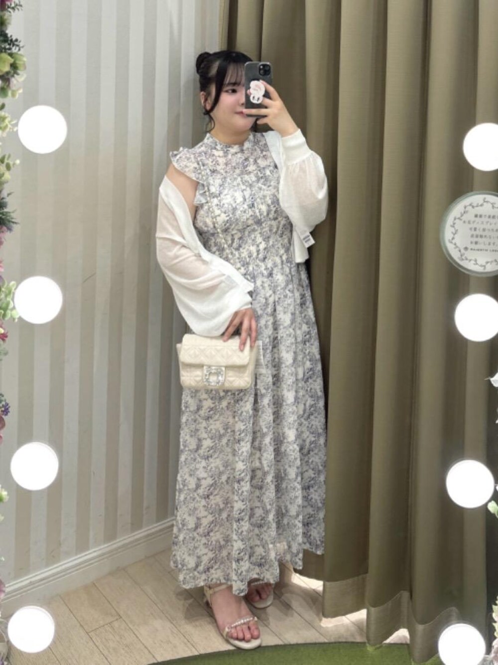 春夏のお出かけにぴったりなフェミニンコーデ🌷 ワンピは日焼け対策や温度調整にシアーのカーディガンを羽織っても一枚で綺麗めにきてもかわいいです🫶🏻 サンダルはヒール部分がクリアになっていたり他にない大人っぽデザインなので綺麗めコーデ好きな方は一足持っていたらこの夏大活躍の予感です...!
