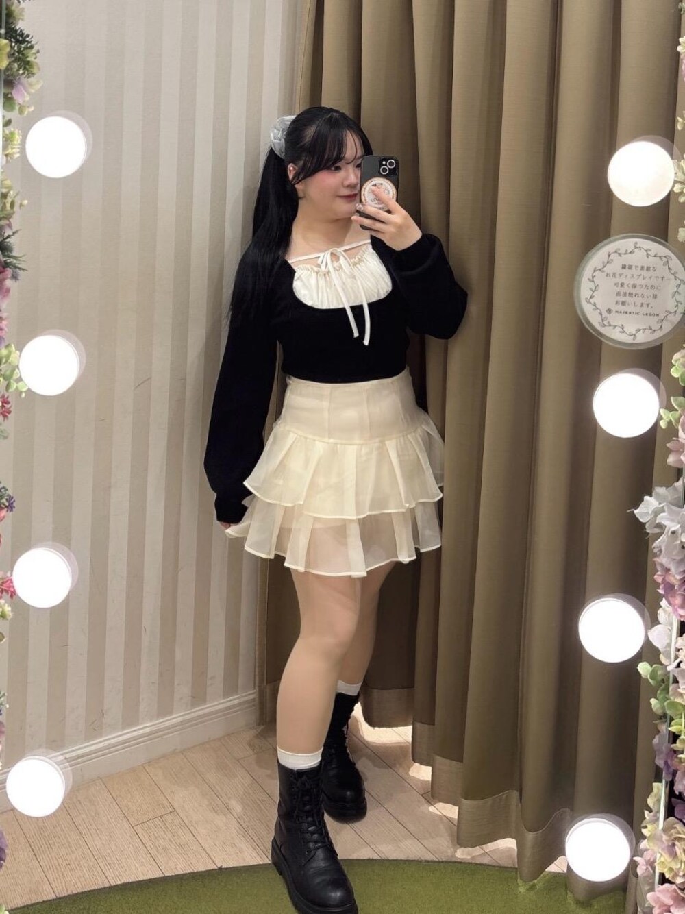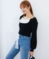 ガーリーコーデ🎀 トップスは袖がふんわりしたシルエットになっているので、黒でも重たくならずとってもかわいいです🪄 ミニはもちろん、ロングスカートやパンツと合わせるのもオススメです!