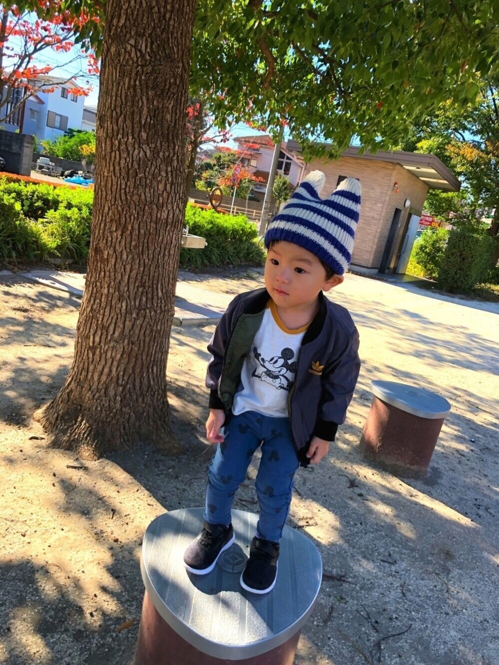 怖いよぉ〜😣 自分で登ったのに、この高さでビビってます😅💦 ママちゃん、今日は、 トリック オア トリーコだね(^^) う、うん。トリック オア トリートね。 頑張れ。息子。