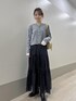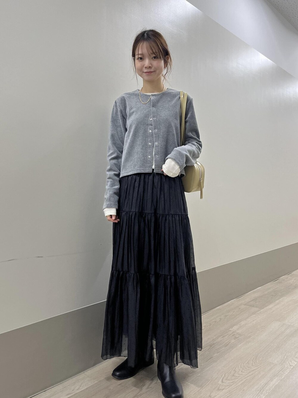 モノトーンでまとめたスタイリングです。 レディーな組み合わせですが、大人っぽくまとめました。 足元はロングブーツで合わせましたが、バレエシューズでも◎