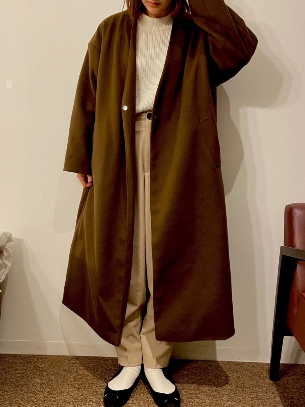 reiのノーカラーコート「ノーカラーメルトンコート / Aunt Marie's」を使ったコーディネート