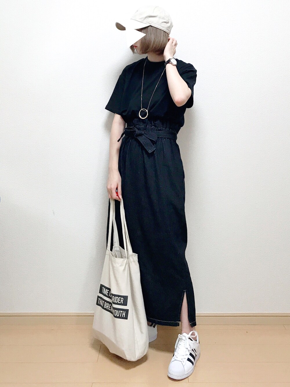 170904 出勤コーデ 昨日着たUNIQLOハイネックTの色違いで ブラック×ブラック スカートはデニムだから ただ黒いだけじゃない感じ!