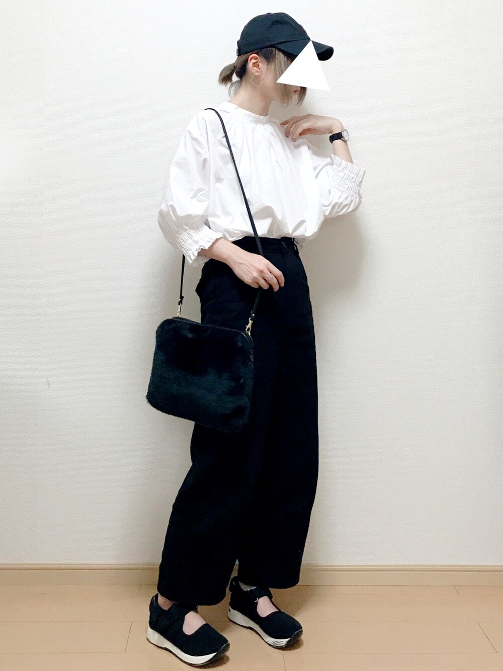 170905 出勤コーデ 気になってたUNIQLOのギャザーブラウス! ビッグサイズで使いやすいし 折り込んでバルーンにしても可愛い👼