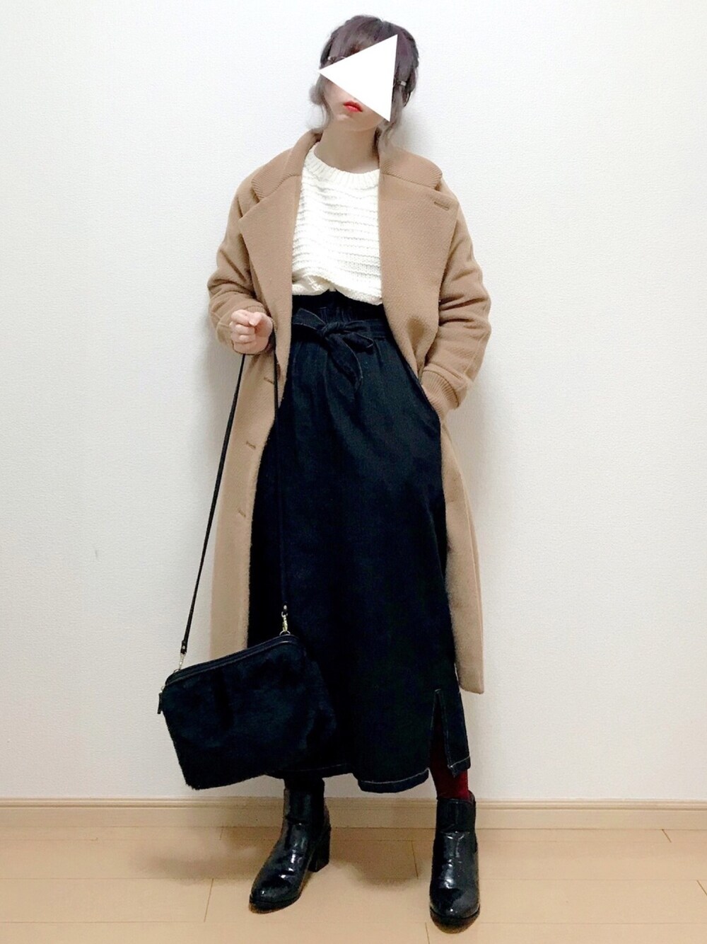 180131 出勤コーデ このタイトスカートの丈感とベルトリボンが好き タイツはワイン🍷