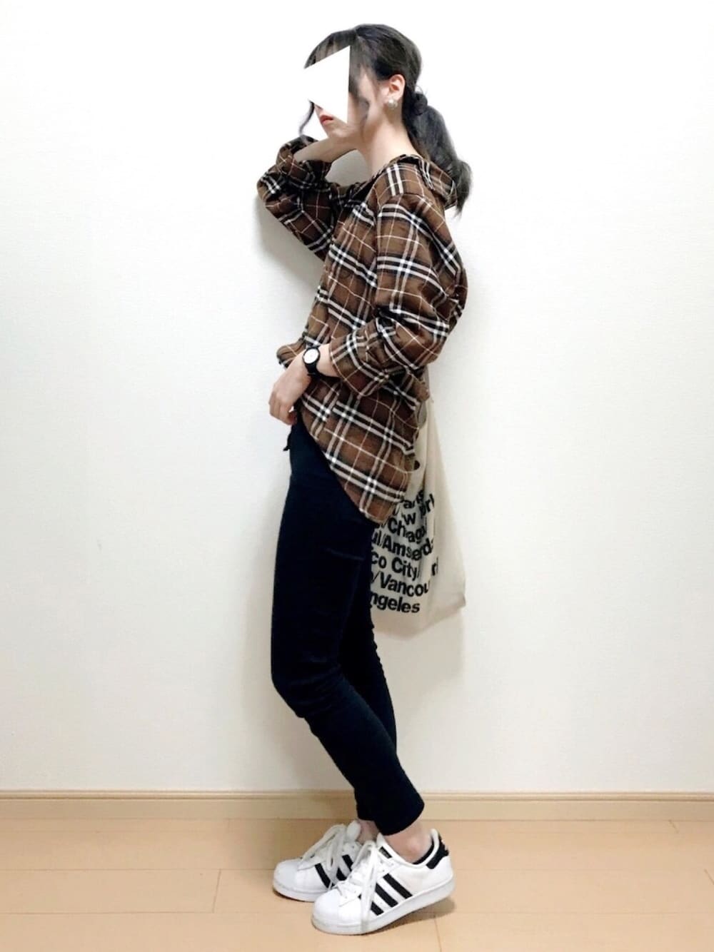 180910 出勤コーデ 秋服買った! これはメンズのLサイズチェックシャツ👶