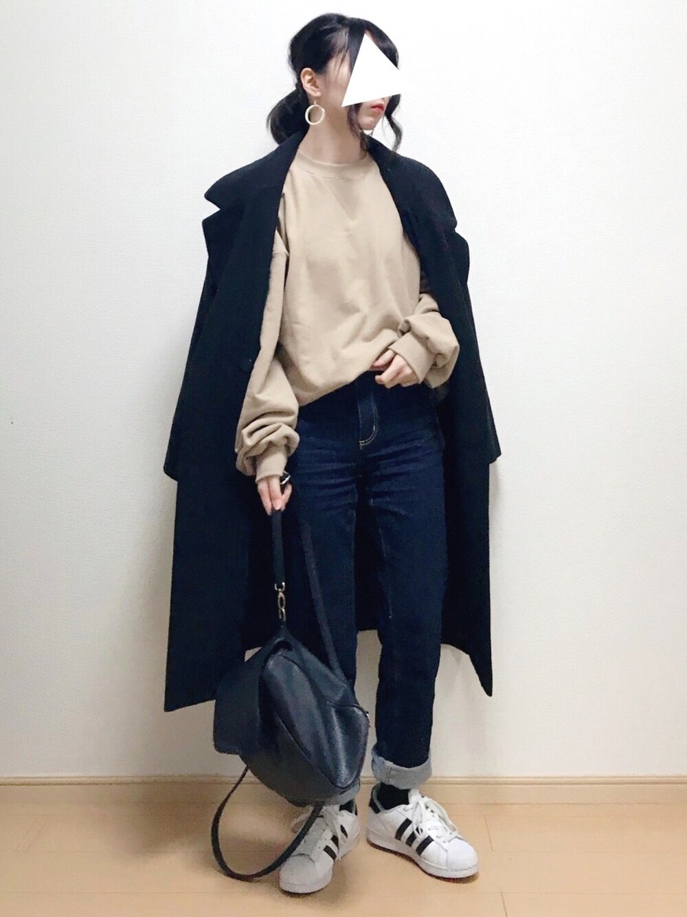 190118 出勤コーデ DHOLICで買ったスウェットのダボっと感いい感じ🐖 GUのハイウエストストレートデニムもちょっと硬めだけどシルエットは好き!