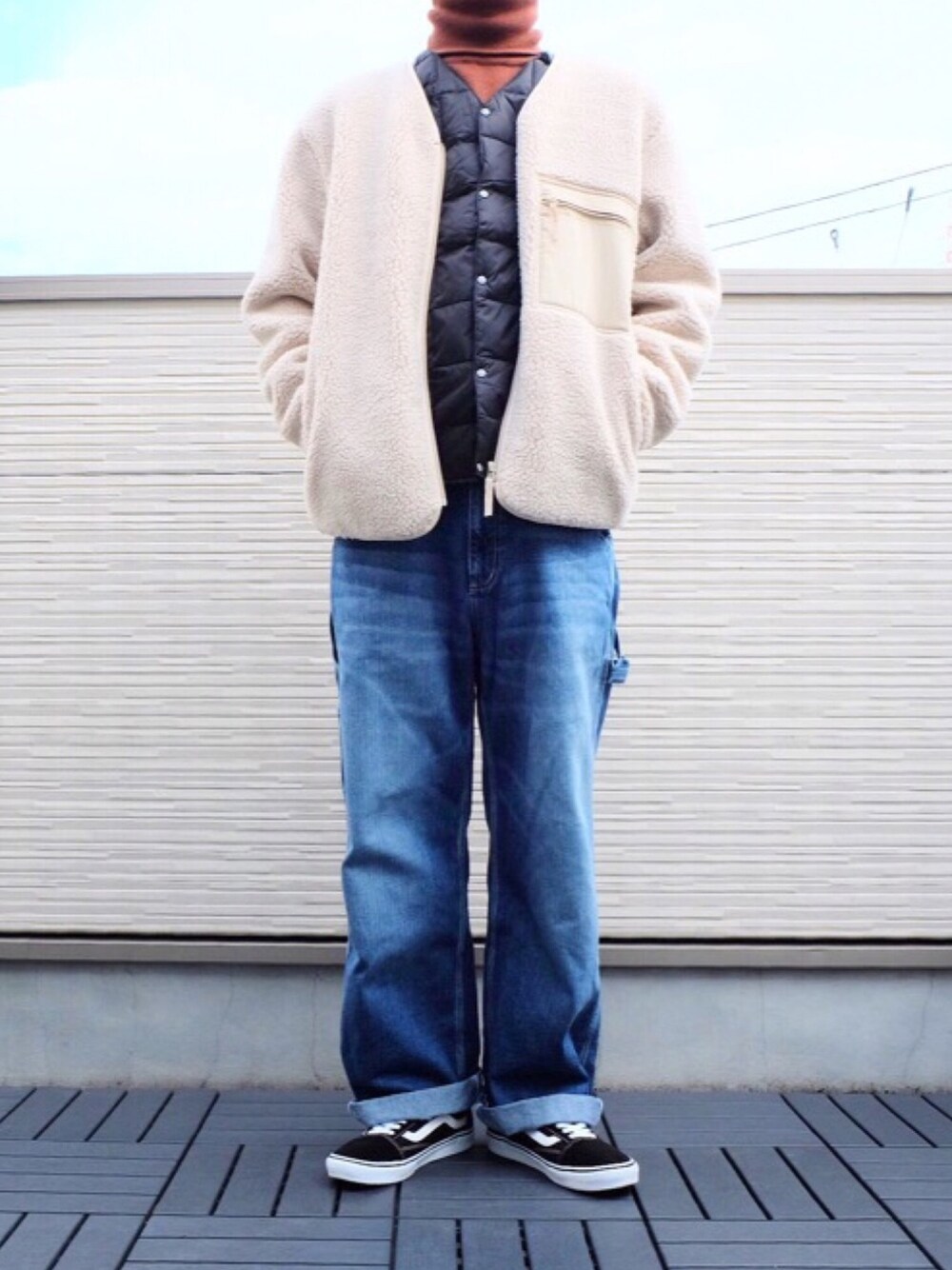 タートルネックにUNIQLO Uのカーディガンを合わせてみました。 アクセントにインナーダウンも。 TAIONのインナーダウンはコスパが良すぎますね!! この薄さでダウン90%入ってるんですよ!! パンツはGUのペインターパンツにしたけど、全体的に太って見えちゃうかな😂 【size】 フリース :L ニット :L ダウン :L パンツ :M シューズ :28