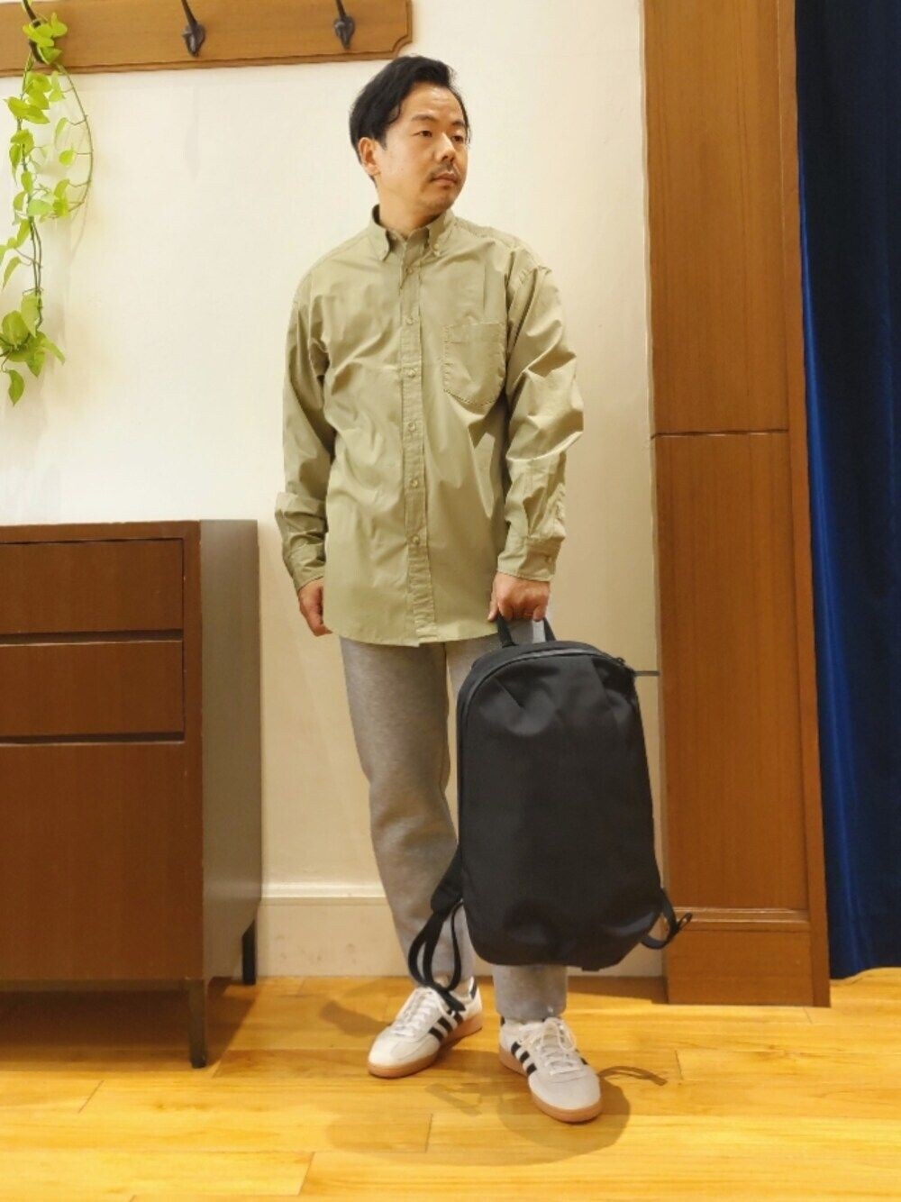 リラックスシルエットのボタンダウンシャツにスウェットパンツを合わせた休日スタイルです。暖かくなってきたのでシャツでのスタイリングを楽しみたいですね。 【シャツ】 コットン100%。ピーチ起毛加工が施されたソフトな肌触りのシャツです。表情のある生地で、シンプルな見た目でも雰囲気のある表情に仕上がっています。やや大きめのリラックスしたシルエットです。 【パンツ】 ダンボールニット素材を使ったパンツです。適度な光沢感のある素材でスポーティーになり過ぎず、シャツなどとも相性抜群です。裾にかけて細くなるテーパードシルエットになっています。スッキリとしたシルエットでも着心地抜群のパンツです。 ノーリーズメンズのアイコン“マッコウクジラ”のワンポイントがベルト下に付いています。 【バッグ】 スタイリッシュなデザインと使いやすさを両立したブランドWEXLEYのベストセラーシリーズ、STEM BACKPACKのリニューアルモデル。 16インチまでのラップトップ用のスリーブをはじめ、日常的な荷物の収納・移動に最適な17Lの容量になっています。 バッグ内部_ ・Mac Book 16インチ相当のラップトップが収納可能 ・ラップトップ用スリーブポケット (内寸 約W27 x H36 x D3cm) ・折りたたみ傘やタンブラーが収納可能な内ポケット ・メインコンパートメントジッパーポケット x2×2 ・キーホルダー バッグ外部_ ・フロント斜めカットジッパーポケット ・ショルダーストラップポケット ・取り外し可能なチェストストラップ ・ジッパー付き背面ポケット ・RFIDプロテクション付背面ポケット 着用サイズ 【シャツ】 Mサイズ 【パンツ】 Mサイズ