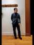 身長 167cm 体重 65kg 着用サイズ すべてMサイズ シャークジャージのジャケットを合わせたコーディネートです。 ジャケットを普段着として大人カジュアルに合わせてみました。リラックス感が出るようにパンツには、ややゆとりのあるタック入りデニムを合わせています。 こちらのシャークジャージジャケットは、伸縮性があり柔らかいので、長時間の着用でも窮屈感無く、リラックスして来て頂けます。ジャケットのウエストはそれほど絞られておらず、多少ゆとりのあるシルエットになっています。 同素材のパンツも作っているので、セットで合わせていただくことも可能です。