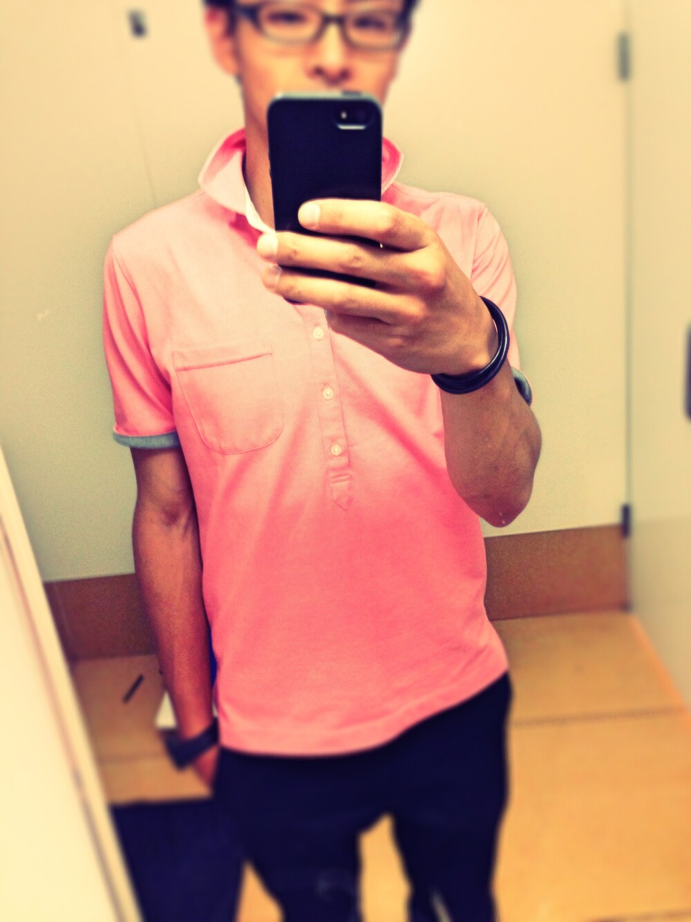 ふつーの日のふつーのポロシャツスタイル。 ふだんの仕事スタイルです。 袖を折り返して、裏の切り替えグレーをちょい見せさせたとこが自分なりの唯一のシャレオツポイント。。。w