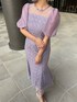 ダイヤ柄のレースにラメが入った華やかで可愛らしいオケージョンドレス👗✨ フィットしたマーメイドさデザインは骨格ストレートさん大優勝です◎👏🏻 ふんわりしたシアー素材のパフスリーブは可愛さを兼ね備えながらも、二の腕カバー出来るのが嬉しいpointに♪