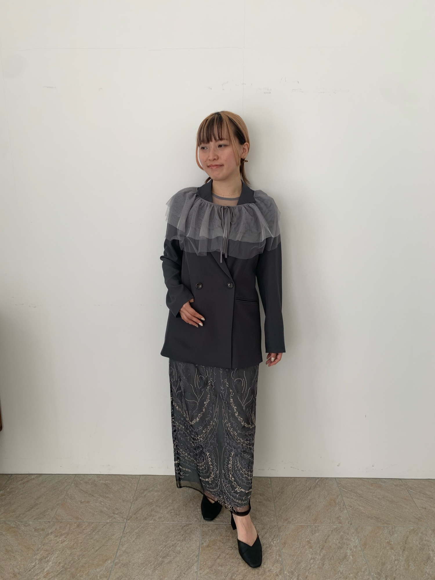 今回はジャケットを合わせて着回しをしてみました✨‼︎ 1.腰にケープを巻いてみた 2.ジャケットの肩部分にケープをかけてみた 3.ジャケットの上からケープを結んでみた 4.ケープを袖のようにつけてみた