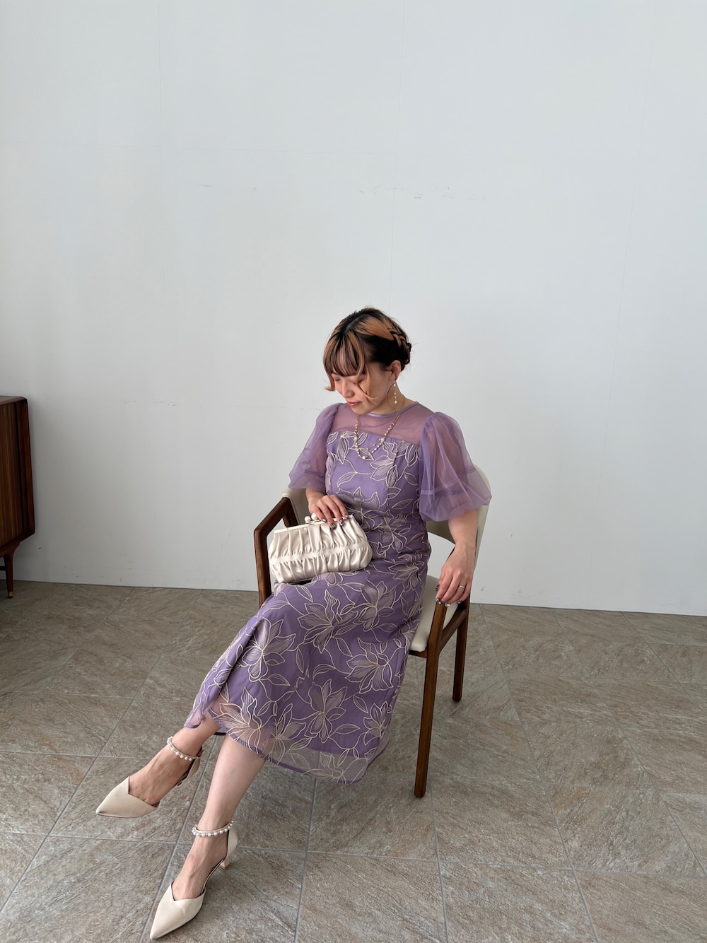 華やかなパープルカラーが目を惹くオケージョンドレス👗✨ 柔らかさをプラスしたかったのでベージュとゴールドの小物合わせをしてみました🤭 他にはない!ドレスを被りたくない方におすすめなアイテムです♪