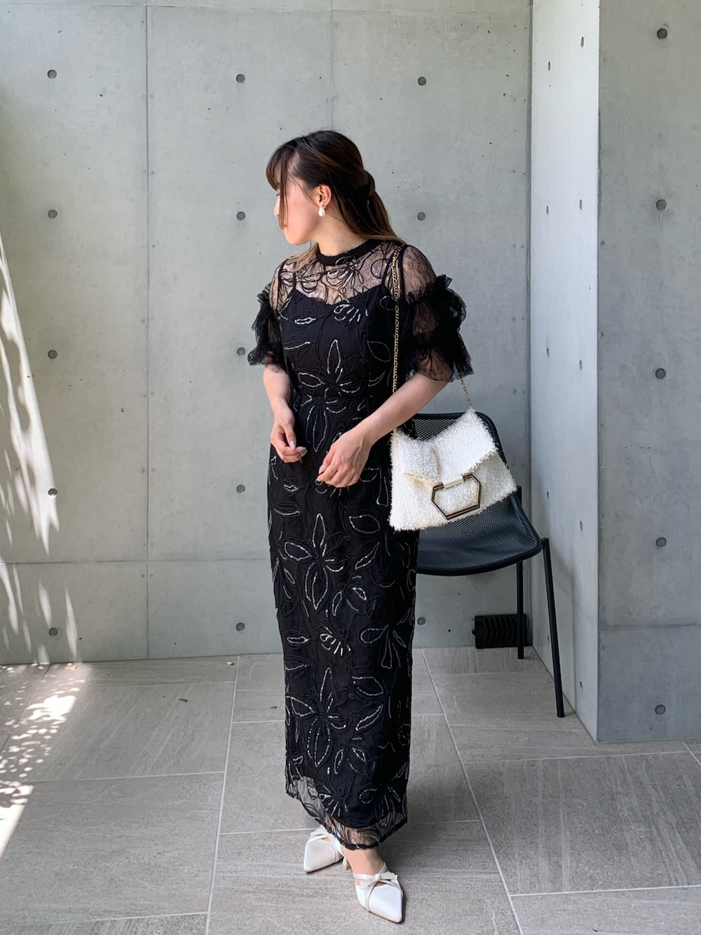 マルチに着回しができるボレロとキャミワンピがセットになったドレスです! ニュアンス感のある刺繍にスパンコールを合わせたことで華やかさを演出。 他にはない立体感を保つ素材を使用したフリル袖は写真映えはもちろん二の腕カバーもバッチリですよ◎✨