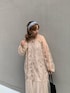 大人気のオケージョンドレスに新色が登場👗!!! 体型カバーのできるAラインシルエット。 細見えするように縦ラインを意識したデザインは隠れたポイントです♪ ふんわりしたボリューム袖は、肩の部分のみシンプルな生地にしたことで抜け感をプラス! 首元のリボンは調節可能になっています✨ 骨格ストレートさんにおすすめなのは、1番下の部分だけリボン結びにすること🎀 絶妙なくすみカラーが、かわいい新色お呼ばれドレスです😌🤍