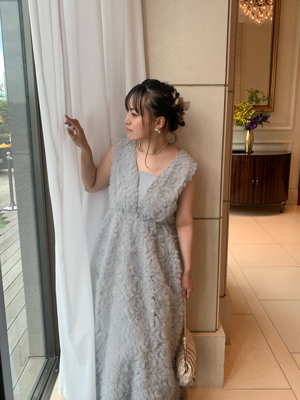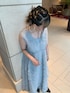 ドレス全体に施したボリュームたっぷりのフリルチュールに、写真映えするように考えられたフレアスカート。 華やかで可愛らしさを重視したオケージョンドレスになっております🤍✨ 水色のようなくすみカラーが、清潔感とクリアな肌見せをしてくれます🤭♪