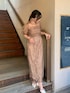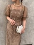 リーフレースを使用したことで、可愛すぎず上品な大人な雰囲気のあるドレス。 同じレースを使用したボレロは、デコルテに抜け感を出し袖は程よいふんわり袖でしっかりと二の腕カバー✨ タイト過ぎないIラインのキャミワンピなので、シルエットを美しく見せつつストレスフリーなのは嬉しいポイントです☺️🤍