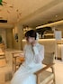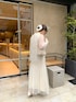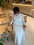 珍しいフェザーの花柄レースを使用した他にはないオケージョンドレス。 プチハイネックにシアースリーブにしたことで、肌の露出が苦手な方にもおすすめです😊🤍 またこちらの白ドレスは結婚式参列ではなく。 花嫁さまご本人の前撮りや二次会。ご自身の誕生日などにご着用いただきたく作成した白ドレスです✨