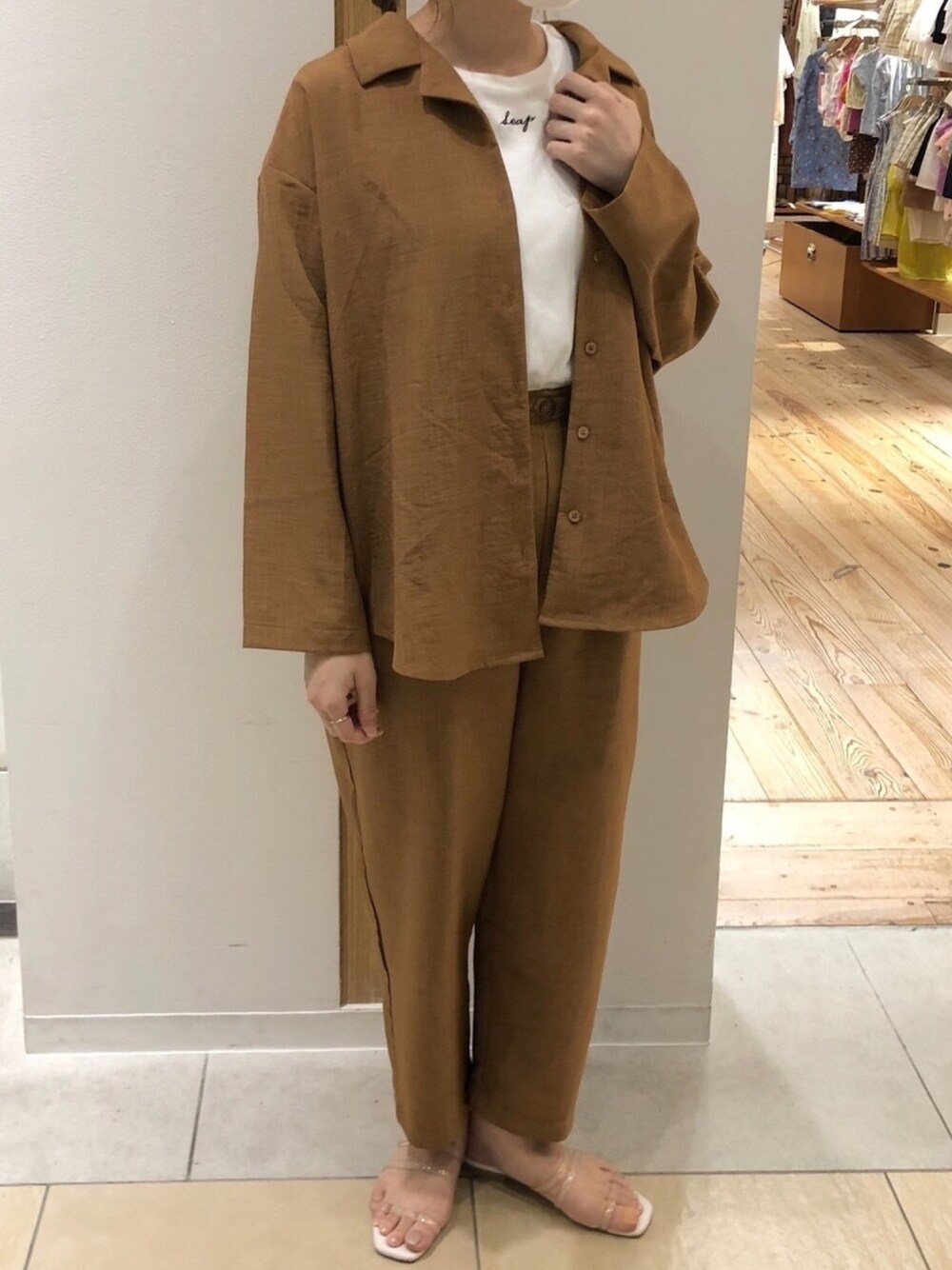 こんにちは!! 写真では伝わりにくいですが、肌馴染みが良いリネン生地です!シャツの抜け感も可愛く単品でも使いやすいです🌟 セットアップなど今から使える秋物アイテムはお値下げしてるので、セットでもお求めやすい価格になってます🤤🤤 セットアップ初心者さんにもオススメです!