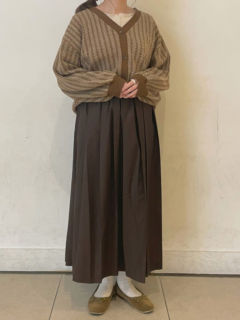 R u n aのカーディガン/ボレロ「単色柄Vネックカーディガン」を使ったコーディネート