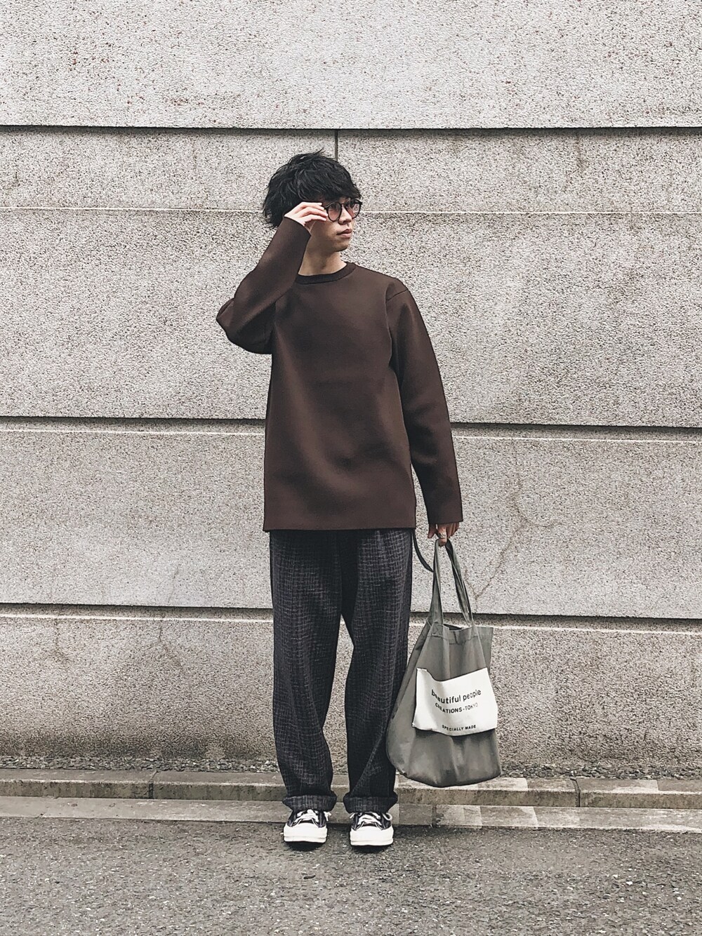 タケル のニット/セーター「12GポリエステルミラノリブCN」を使ったコーディネート