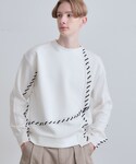 多彩な素材の魅力を活かしたコードステッチダンボールカットソーは、ゆるシルエットでリラックスした着心地を実現。 ニットとカットソーを巧みに組み合わせ、ハンドステッチの配色デザインがアクセントに。 ダンボール素材のカットソーと7ゲージニットの切り替えが、他にはない個性とスタイリッシュさを演出します。 どんなボトムとも相性良く、多彩なスタイリングを楽しめる一枚です。