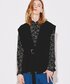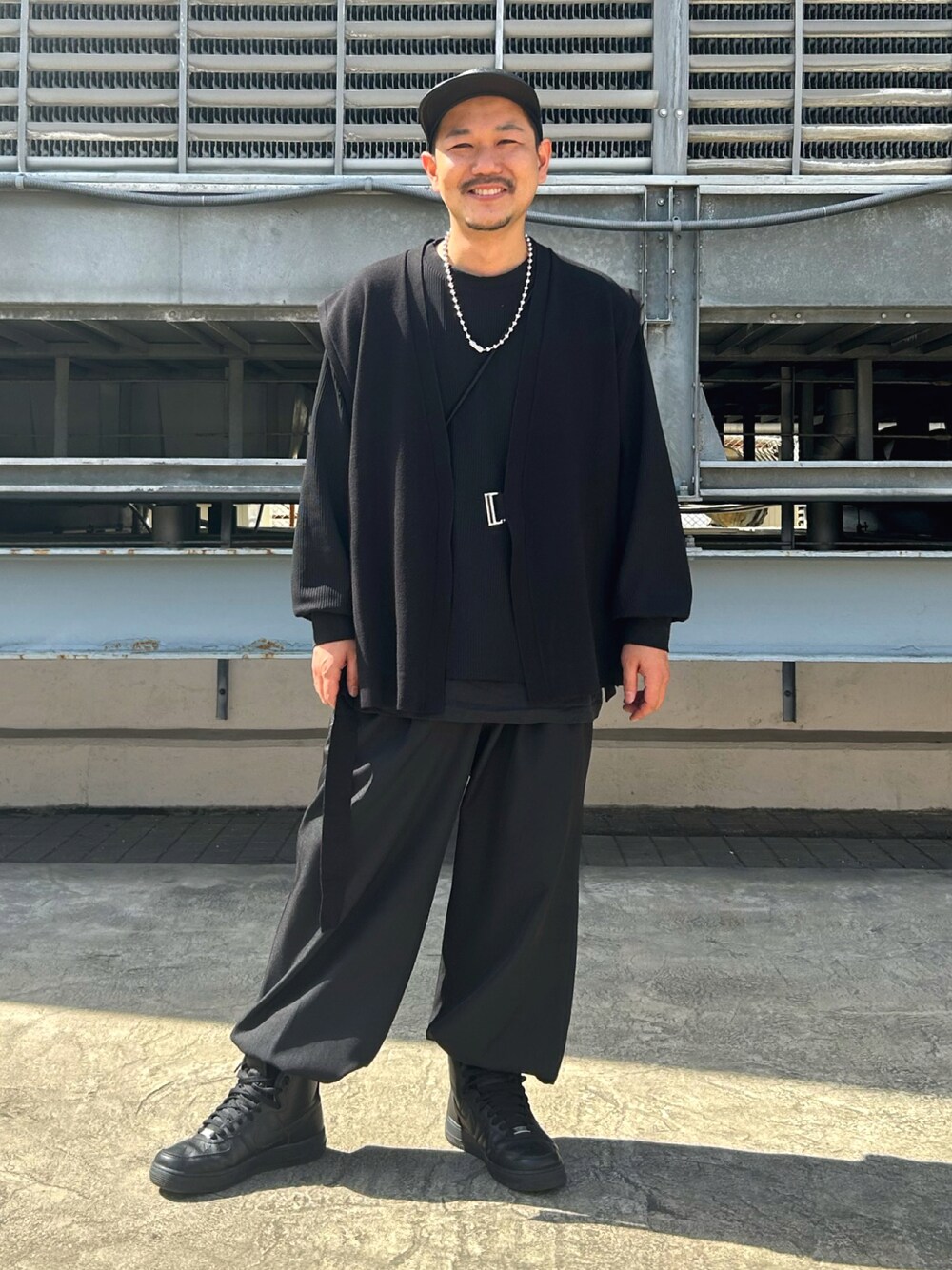 可愛くなりがちなニットベストをオールブラックでスタイリングしキリッとした印象へ。 ニットベストがタイロッケン仕様になってるのも今年らしく○。