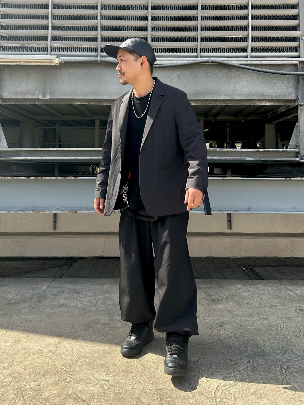 ジャケットをワイドパンツでスタイリング。 表面にワッシャー加工が施されこなれ感を演出。 全体的カジュアルな雰囲気にしてみました!
