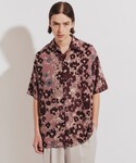 ピンクで花柄が目を引くオーバーサイズシャツを可愛くならないようブラックのアイテムと合わせスタイリング。夏らしく前開きにで開放的に羽織り、リネンライクなワイドストレートシルエットのスラックスにインナータックインしスッキリさせました!
