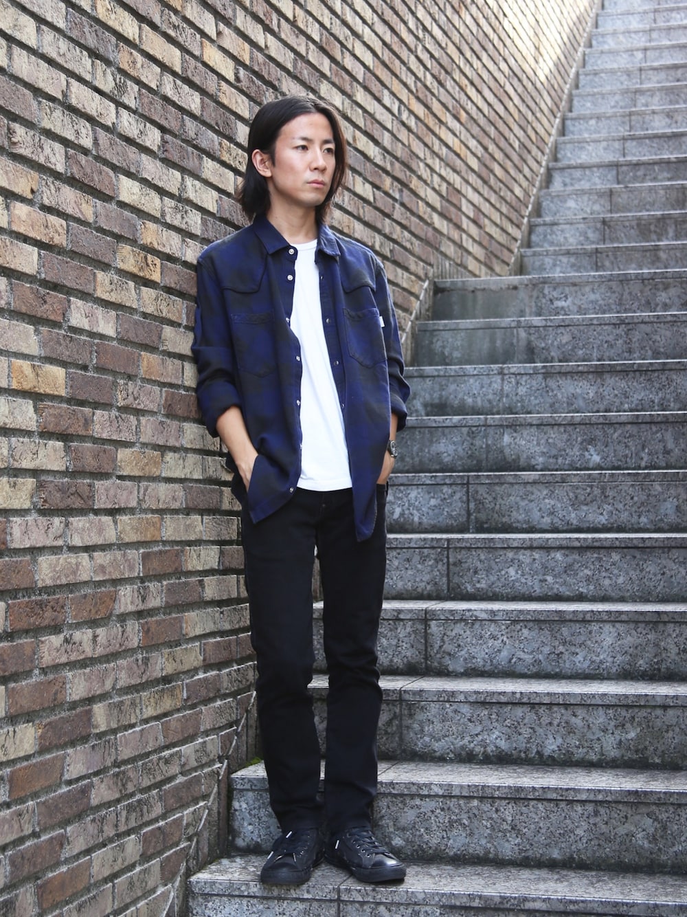 シンプルにシャツスタイルで。 Instagram:@factotum_kudose