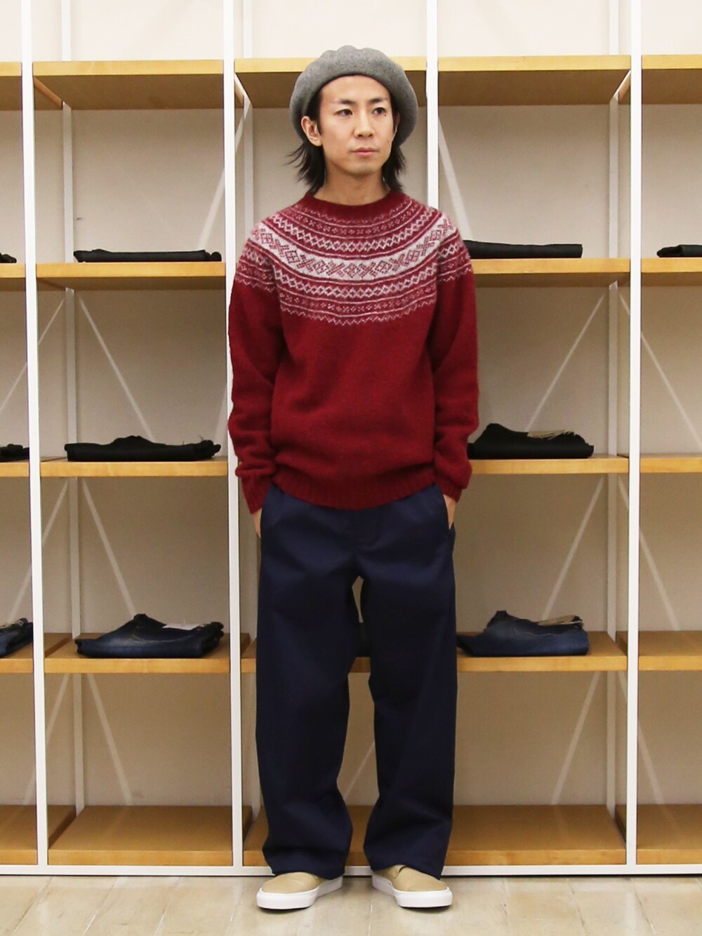 Takahiro_Kudoseのニット/セーター「【VALLIS】インバーアラン シェットランドジャガードニットクルーネック」を使ったコーディネート