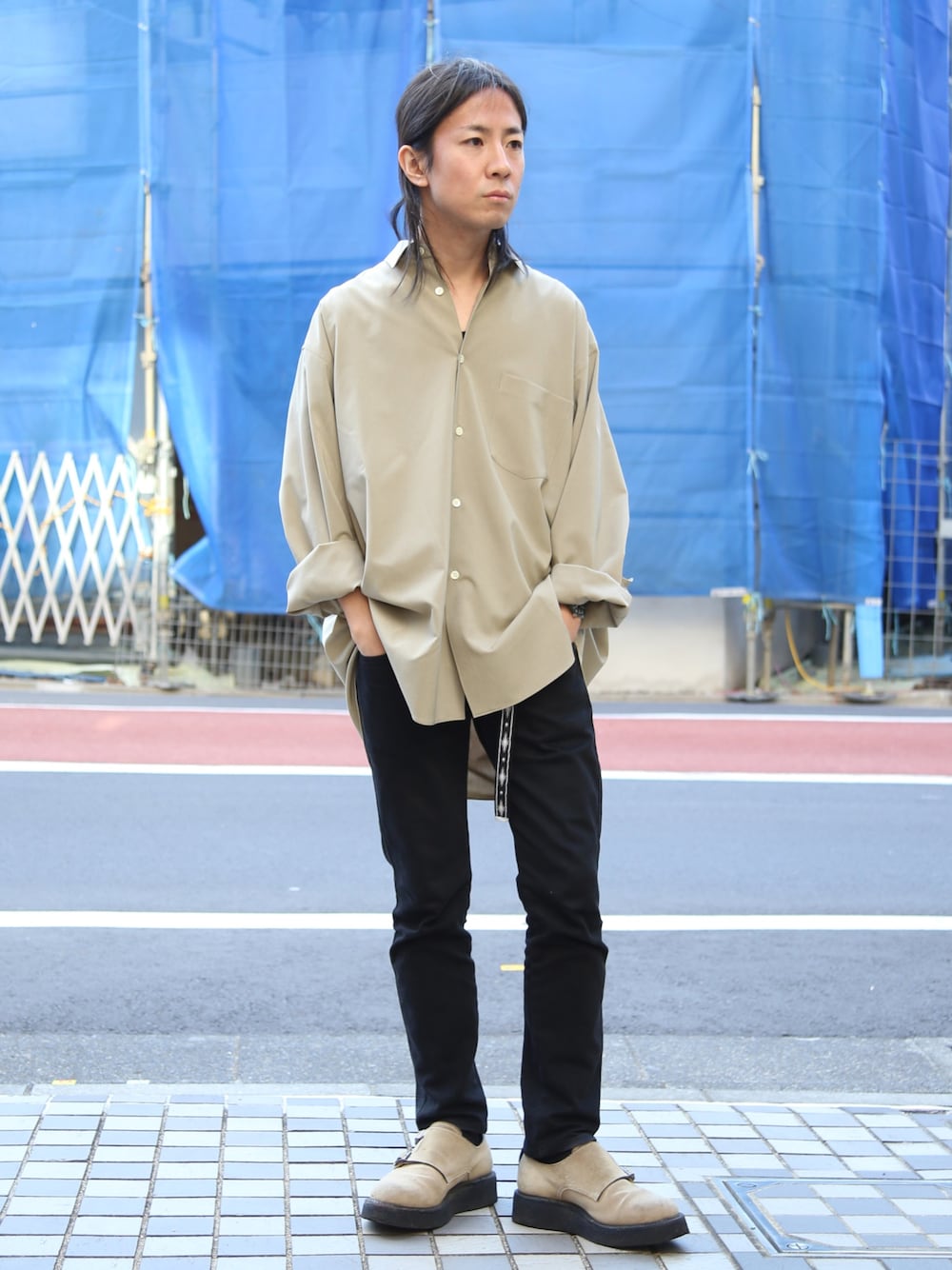 オーバーサイズシャツを更にオーバーにチョイス。 ビッグシルエットシャツの気だるい感じが好きです。 昼間はかなり暖かくなってきたので、これくらいでいい日も出てきましたね! Instagram: @factotum_kudose