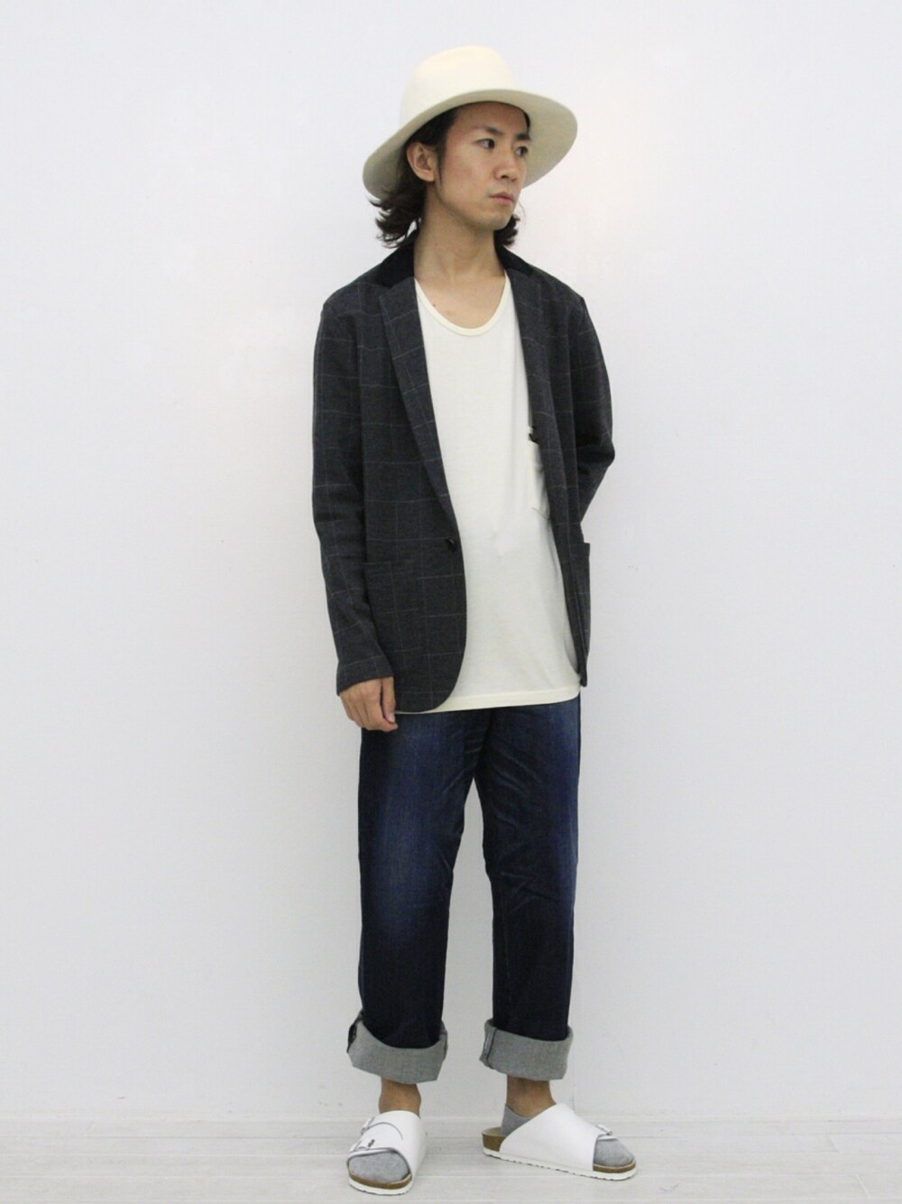 ジャケットにサンダルのミスマッチさが昔から好きなんです!