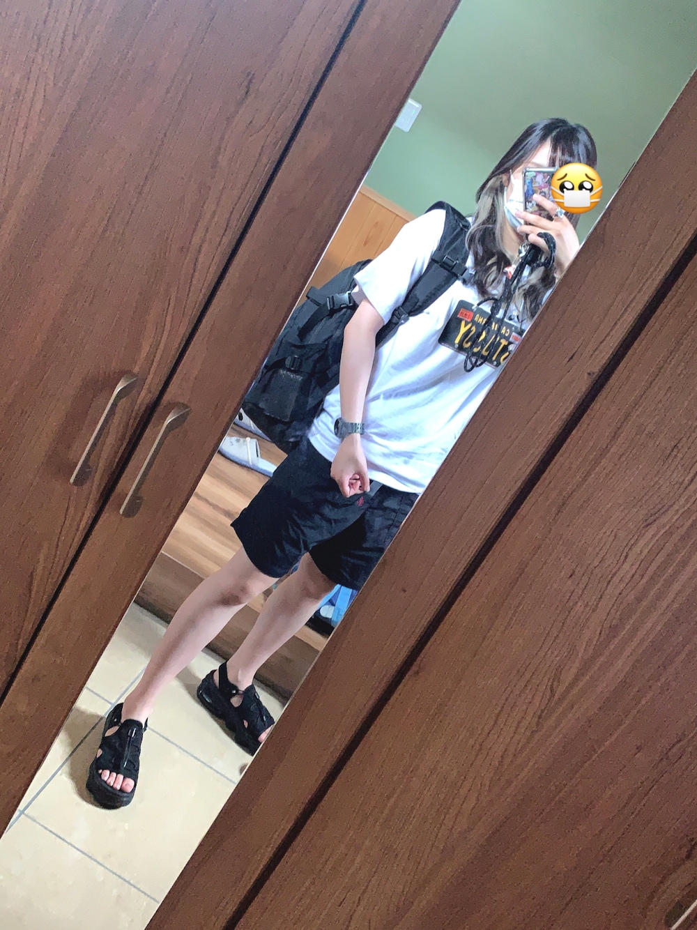 友達から誕プレでもらった新作Tシャツ×母上が誕プレでくれたシャカシャカパンツ 頂き物コーデ♡ このまま川に行きたい