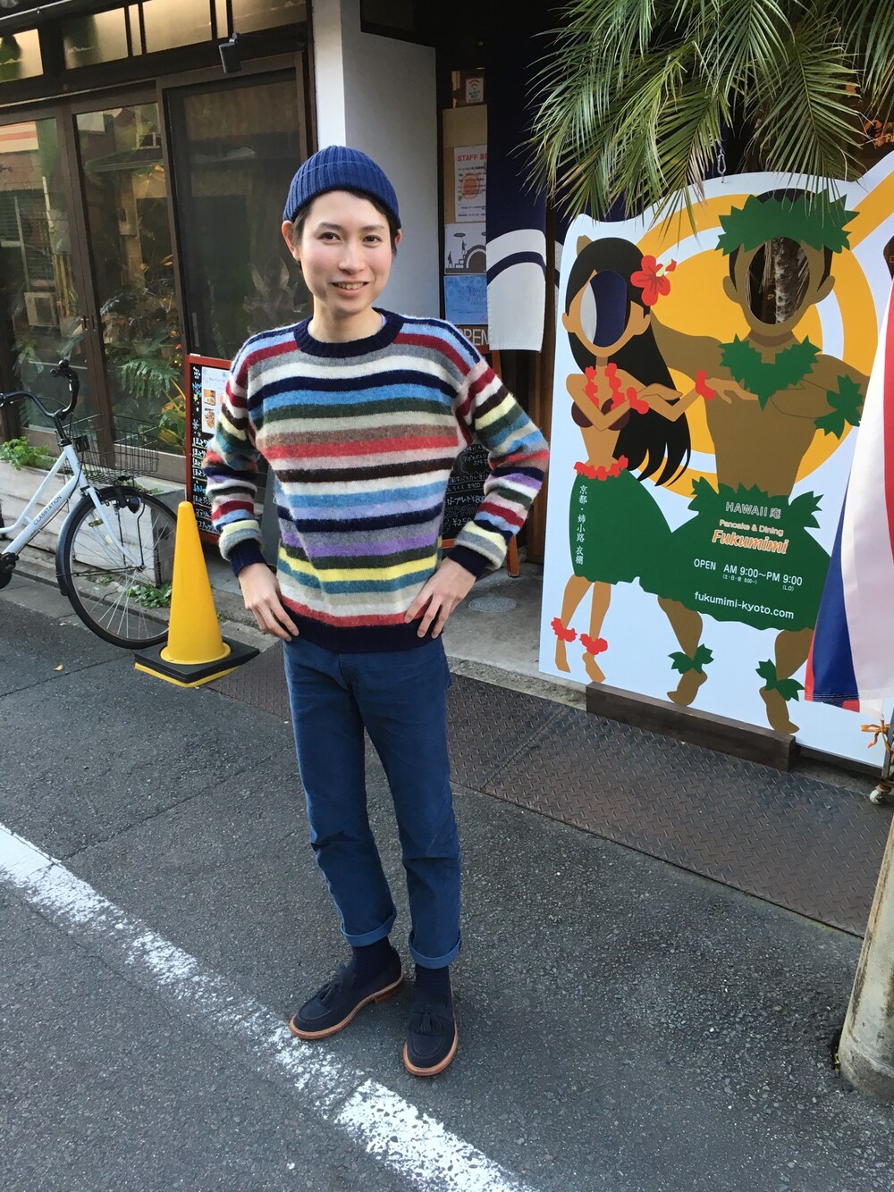 大好きな京都のハワイアンカフェの前で撮影。 最近購入したこのセーターめっちゃお気に入り!
