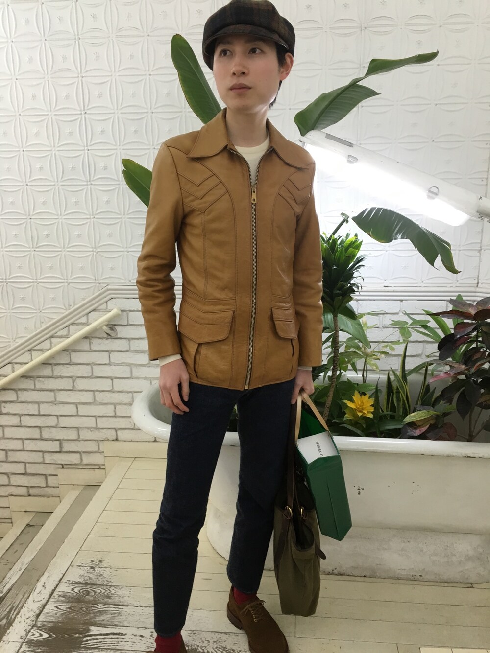 今日は昼過ぎまで会社で事務処理。 その後は京都へ。 神戸から京都結構遠いね。 今日着ているヴィンテージのレザーはシルエットが細くていい感じ。