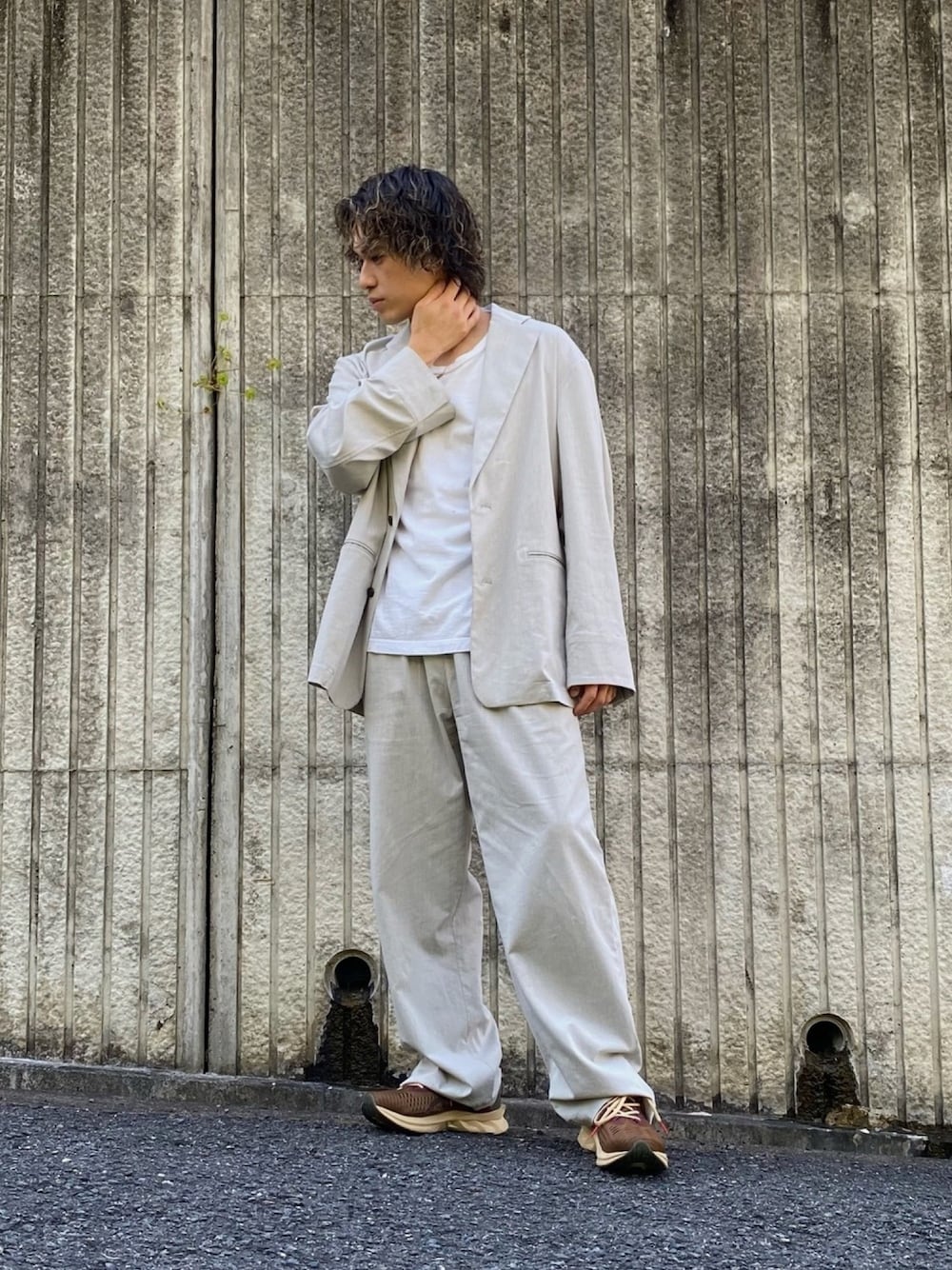 takky【美容師】のテーラードジャケット「レーヨン麻混リラックスジャケット」を使ったコーディネート