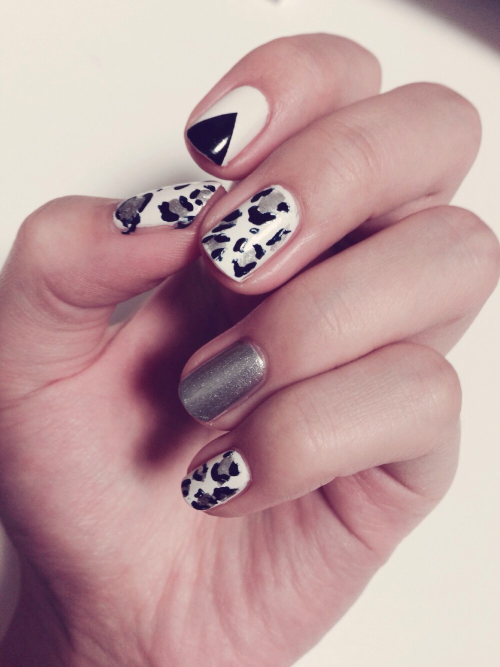 ホワイト、ネイビー、シルバーで簡単なレオパード柄を描いてみました(** ) 三角はマスキングテープで