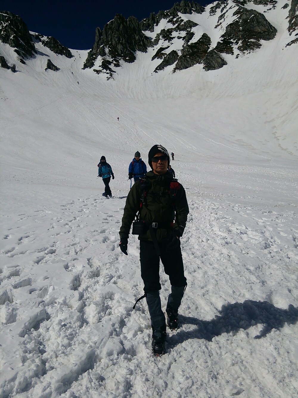@木曽駒ヶ岳・千畳敷カール beanie: SÄGLIFE glasses: zerorh+ gloves: marvel peak outer: THE NORTH FACE pants: MILLET gaiters: mac pac shoes: NIKE ACG crampons: BLACK DIAMOND backpack: KLÄTTERMUSEN