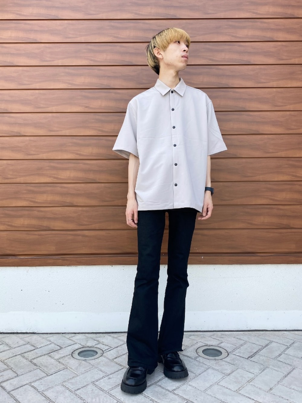最近シャツは羽織りじゃなく一枚で着るのにハマってます☺︎ パンツは広がりが強いレディースのフレアパンツを着用しスタイルアップしてます!